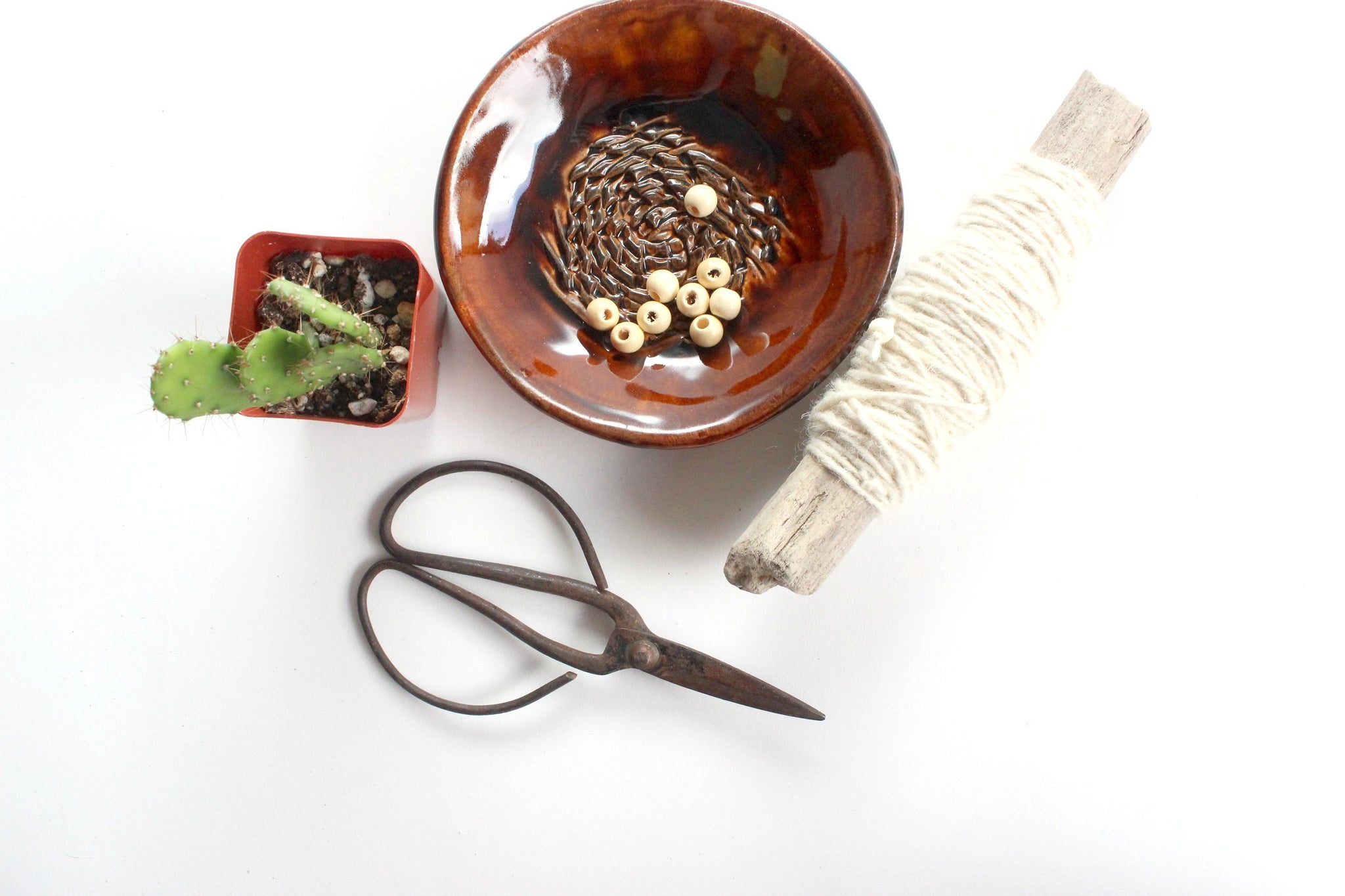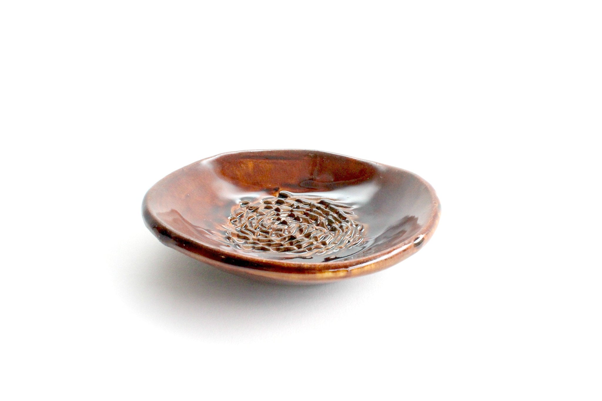 PRODUCT DESCRIPTION Vintage stoneware Dish. Small circular clay plate or shallow bowl. Can be used as an ashtray or for holding small trinkets. Handmade with an etched design on the front and back. Glazed with a dark caramel brown color. Very unique! CONDITION Good vintage/used condition. SIZE Measures 5.25 inches wide and 1 inch tall. SHIPPING Overpaid shipping charges will be refunded when item(s) ships. If you are planning to purchase multiple items, contact me for a combined shipping rate, as this is sometimes possible. Free pick-up from zip code 91710 can be arranged. Enter coupon code: FREEPICKUP at checkout and leave a message so we can schedule a time for you to pick-up. THANK YOU Thank you for stopping by my shop! If you have any questions please don't hesitate to send me a message. I will always try to respond with in 24 hours. Also, follow along on Instagram @mendezmanor and be the first to know when new listings hit the shop!